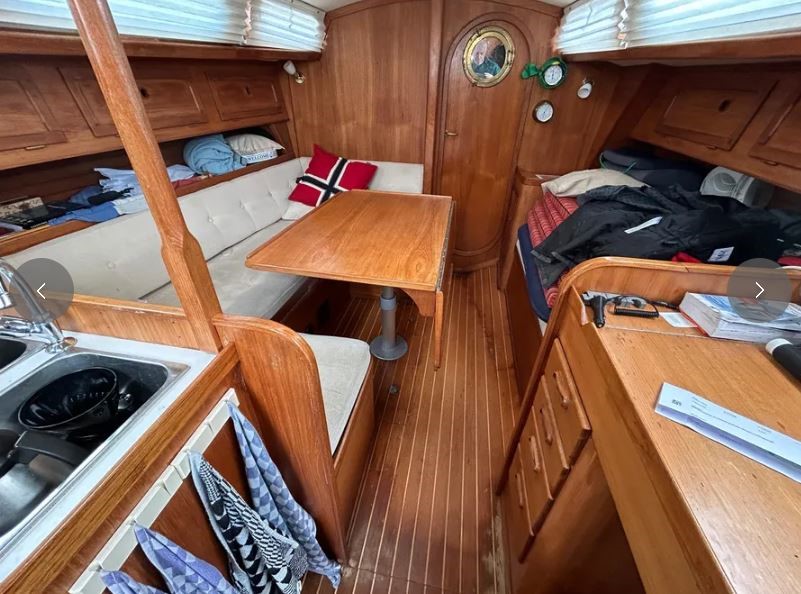 Il a une capacité de couchage pour 8 personnes : une grande cabine arrière, un lit breton, un carré convertible, et deux couchettes de mer.